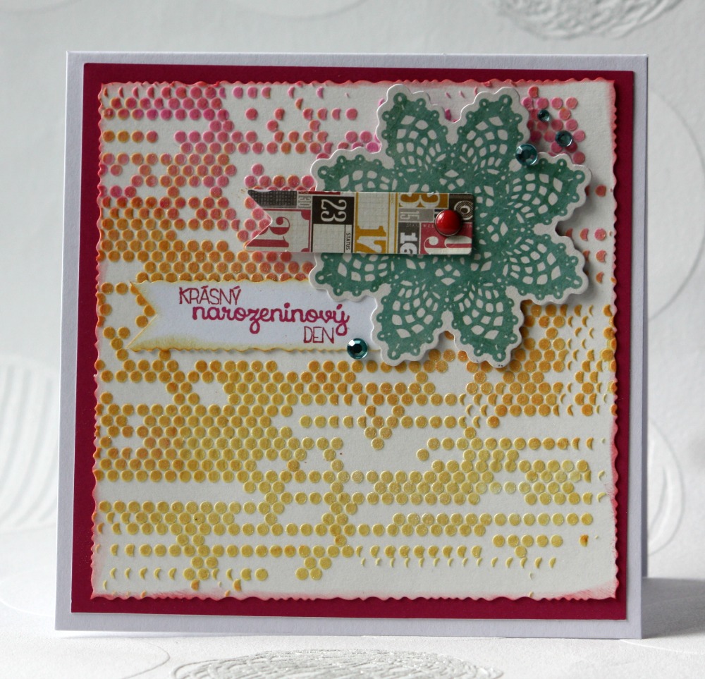 Použila jsem inkousty obarvenou strukturovací pastu, kterou jsem nanesla